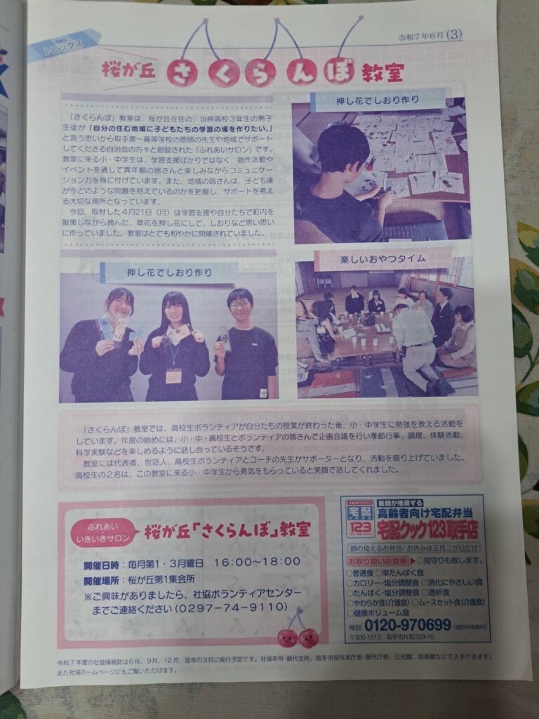 こども学習支援では、桜が丘にある教室を「さくらんぼ教室」と呼び、地域の高校生ボランティアや地域の方々とともに、小・中学生の学習や成長を支える活動を行っています。